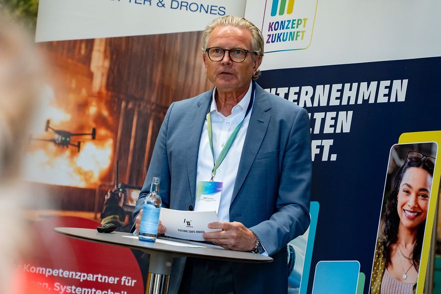 Gastgeber Cornelius Toussaint, Geschäftsführer der CONDOR Gruppe, gab zunächst spannende Einblicke in die vielfältigen Tätigkeitsschwerpunkte seines Unternehmens. Aus Sicht der IHK zu Essen stellte Marc Meckle dar, wie sich die IHK aktuell im Bereich Sicherheit und Verteidigung positioniert.